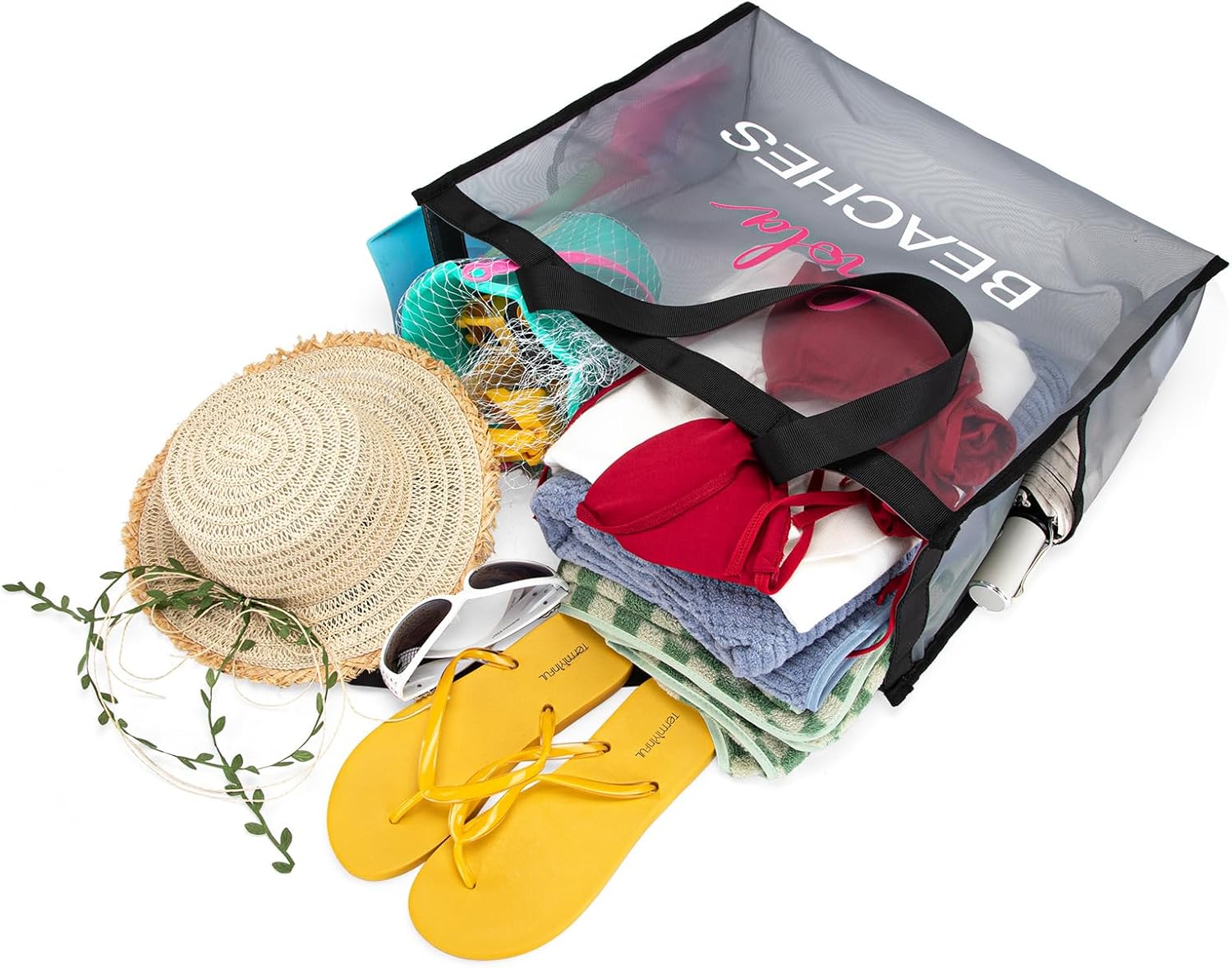 Customers find the beach tote spacious, able to fit all essentials, and appreciate that its design matches the product pictures. The bag is durable, with one customer noting it held up well in Myrtle Beach, and customers consider it perfect for beach use, with one mentioning it works well for towels and adult items. They like its color and consider it good value for money, with one noting it folds flat for packing.