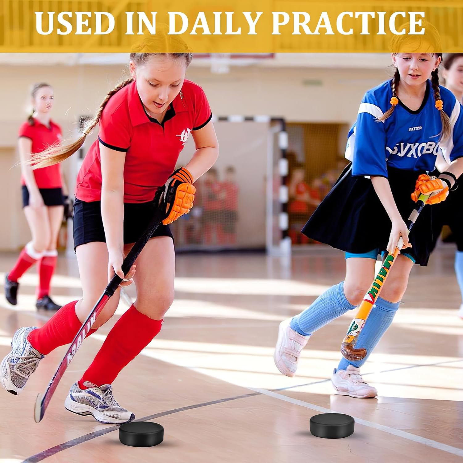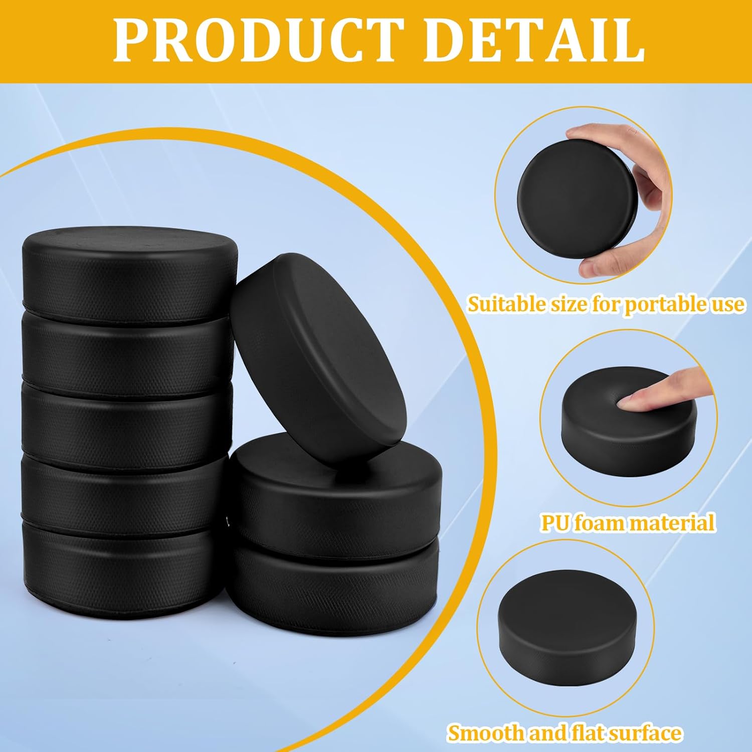 Ice hockey pucks set are constructed from PU foam, boasting durability and bounce to withstand intense games; Plus, their colors not only add to their visual appeal but also increase visibility during the play, making them suitable for both novice and expert players.