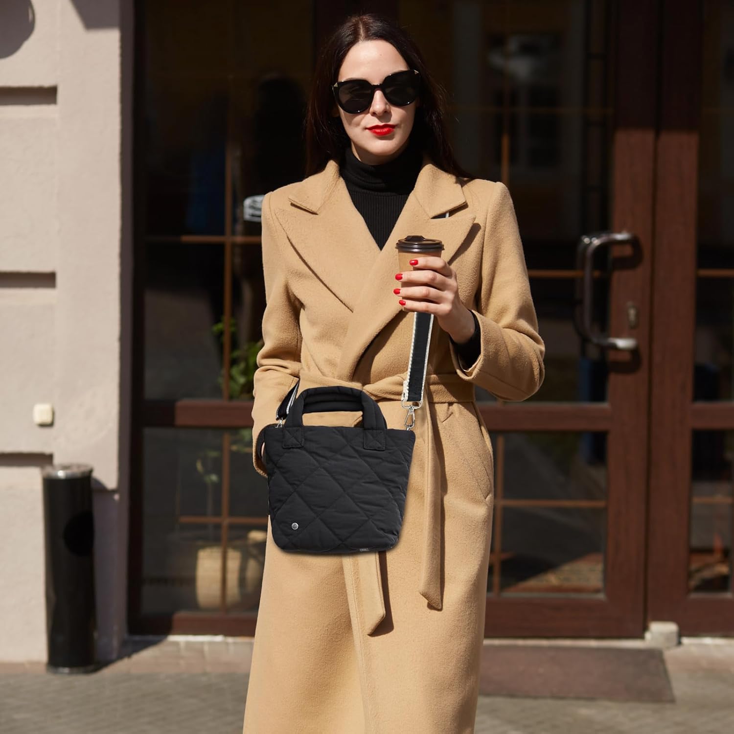 MYHOZEE Small Puffer Tote Bag, Quilted Crossbody Bags for Women Puffy Nylon Shoulder Purses Lightweight Mini Handbags