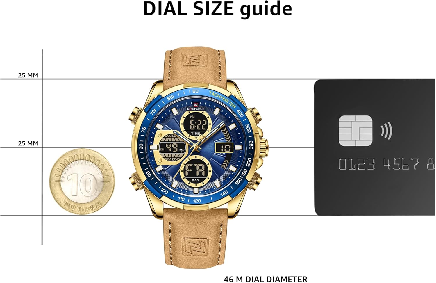 NAVIFORCE Men’s Military Digital Watches Analog Quartz Waterproof Watch Sport Multifunctional Leather Wristwatch