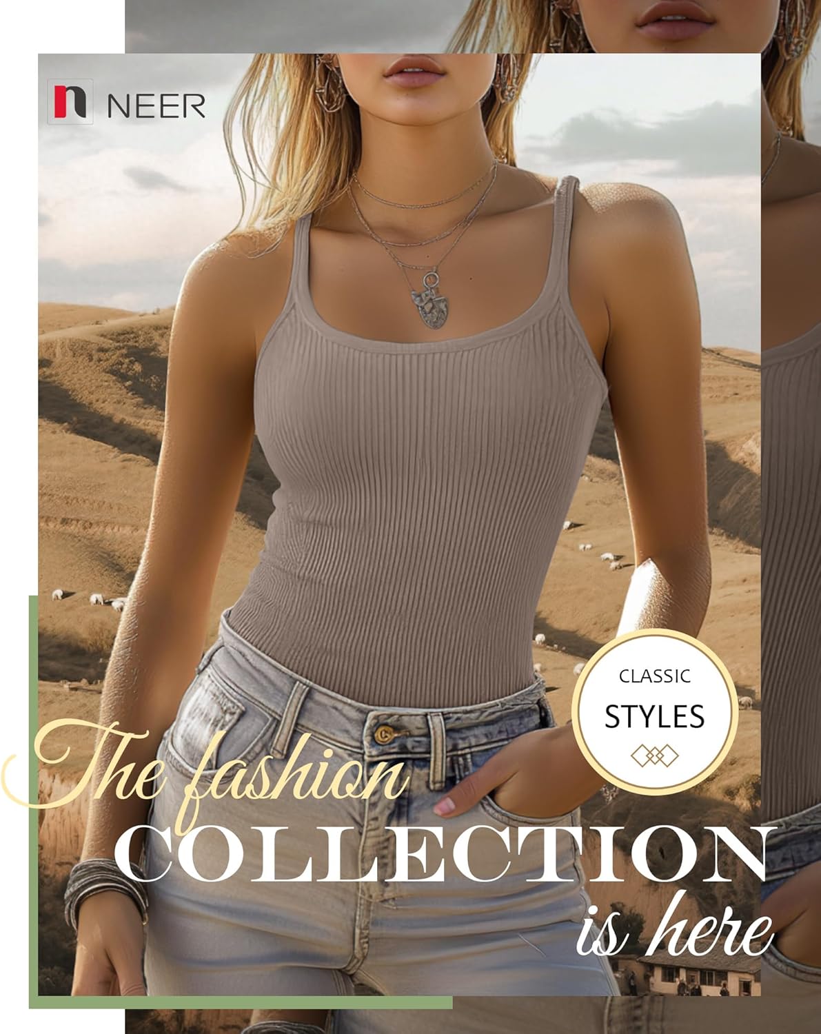 Neer 3 Pack Women’s Spaghetti Strap Ribbed Tank Tops, Slim Fit Cotton Scoop Neck Sleeveless Knit Camisole Basic Cami Shirts
