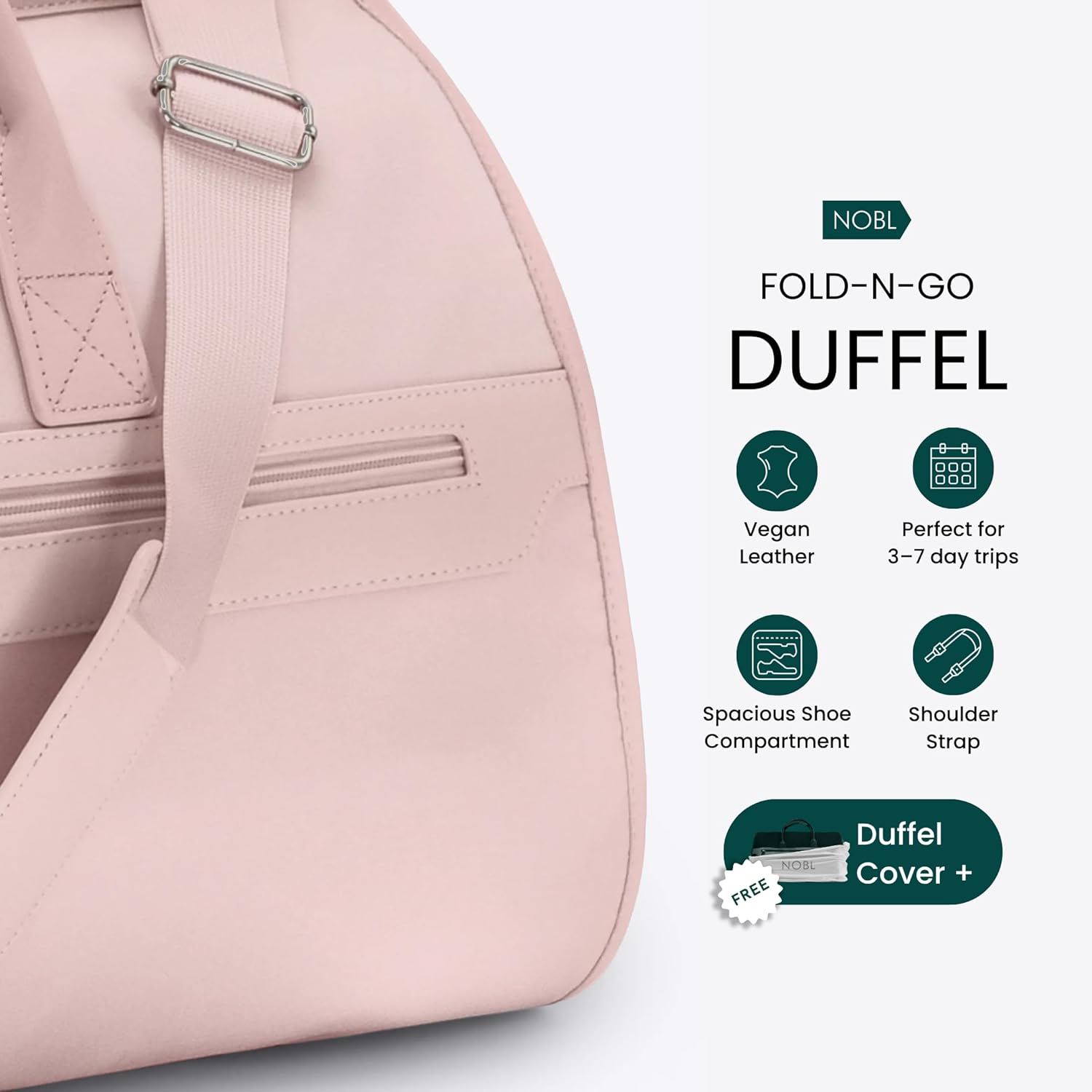 Be the first to review “NOBL Travel Fold N Go Duffel Bag, 2-in-1 Convertible Garment Weekender Bag & Suit Carrier, Large Carry On Duffle Bag for Men & Women, Leather Overnight Bag with 2 Shoe Compartments – Pink”