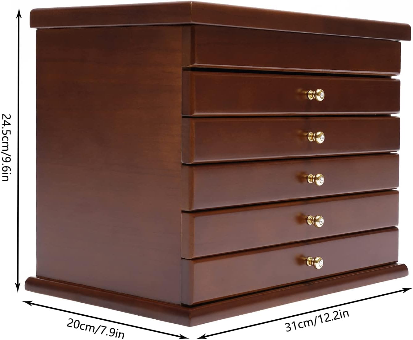 None/Brand Jewelry Box 6 Layers Large Jewelry Organizer Wooden Storage Box Case with 5 Drawers Wooden Jewelery Box for Rings, Necklaces, Earrings, Bracelets Christmas Gift (Brown)