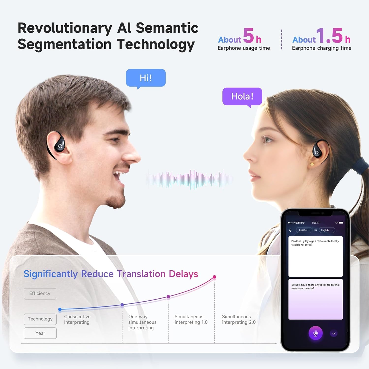 The OEQ translation earbuds use smart noise-reduction to filter out distracting background noise