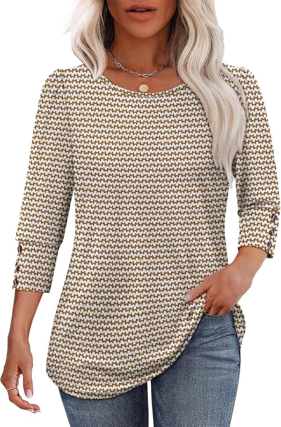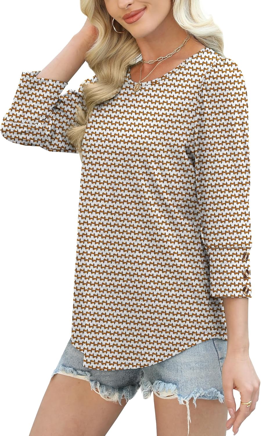 OFEEFAN Womens Tops 3/4 Sleeve with Buttons Dressy Casual Blouses Summer Outfits Beach Vacation Plus Size Spring Clothes