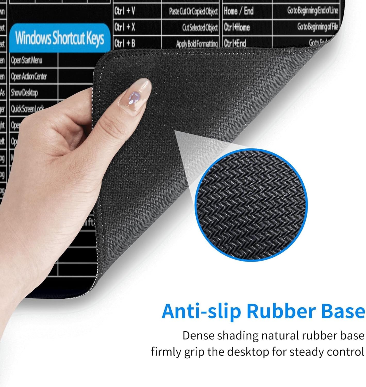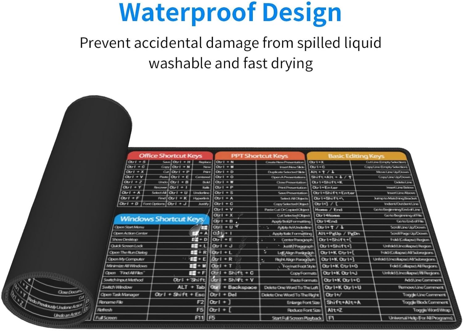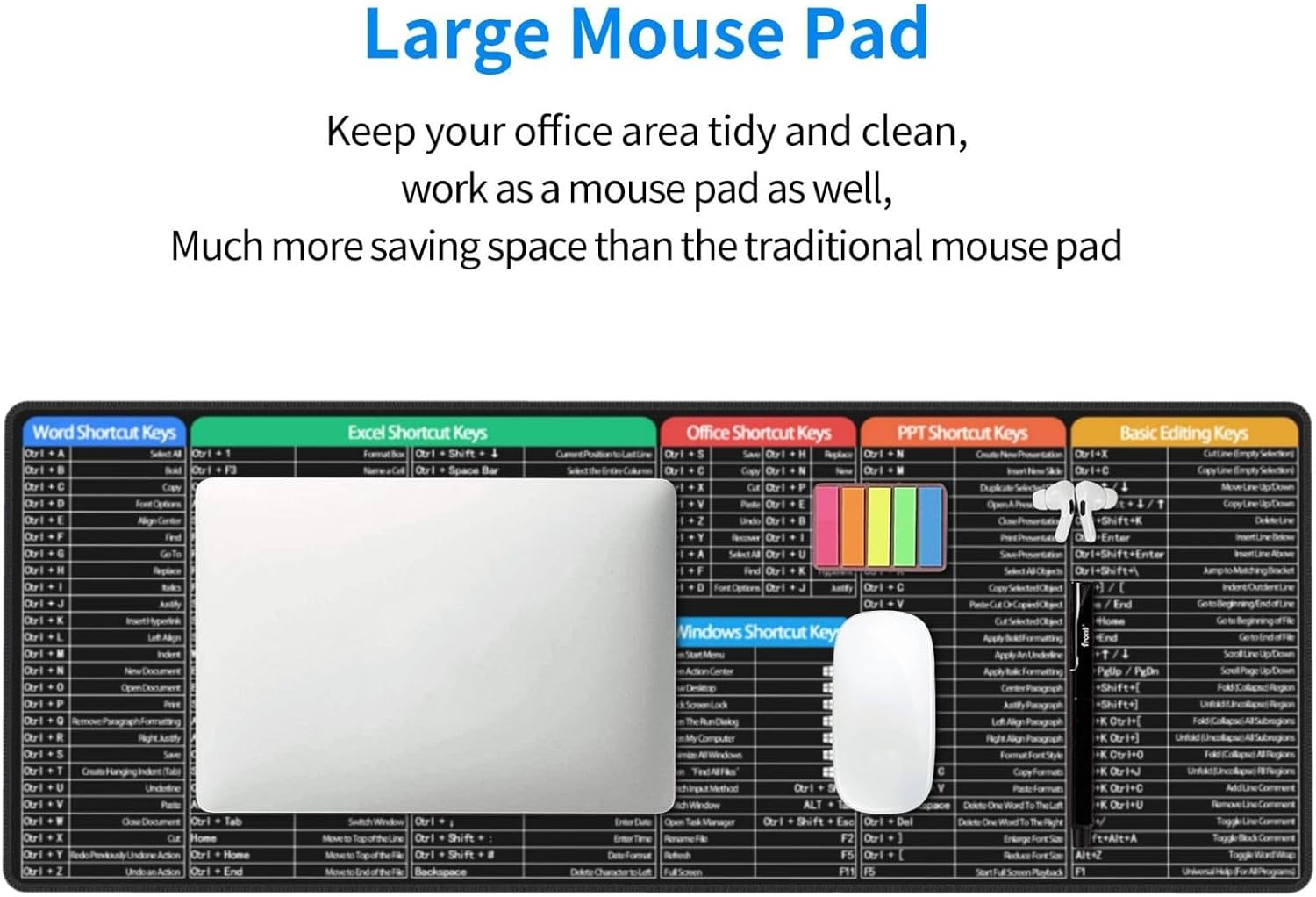 Office Computer Word Excel Power Point Shortcuts Key Shortcut Keys Gaming Mouse Pad 31.5 X 11.8 Inch XL Extended Large Keyboard Non-Slip Rubber Base with Stitched Edges for Home Office
