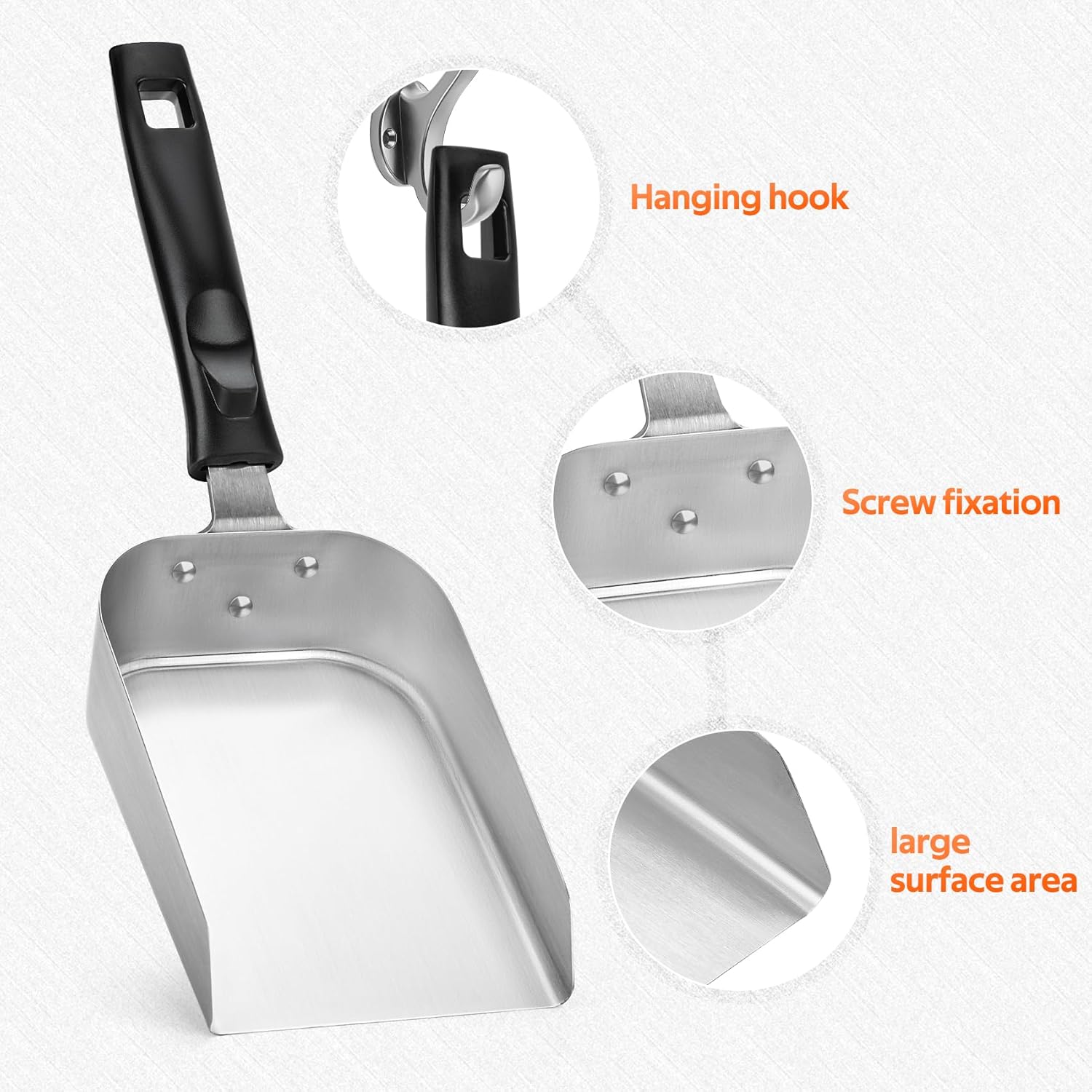 Multi-Functional Griddle Scoop: Apart from being used for quick scooping, moving, serving food at once. It also functions as a reliable feed scoop for pet food, livestock feed, and bulk ingredients. You can explore more possibilities based on your own needs.
