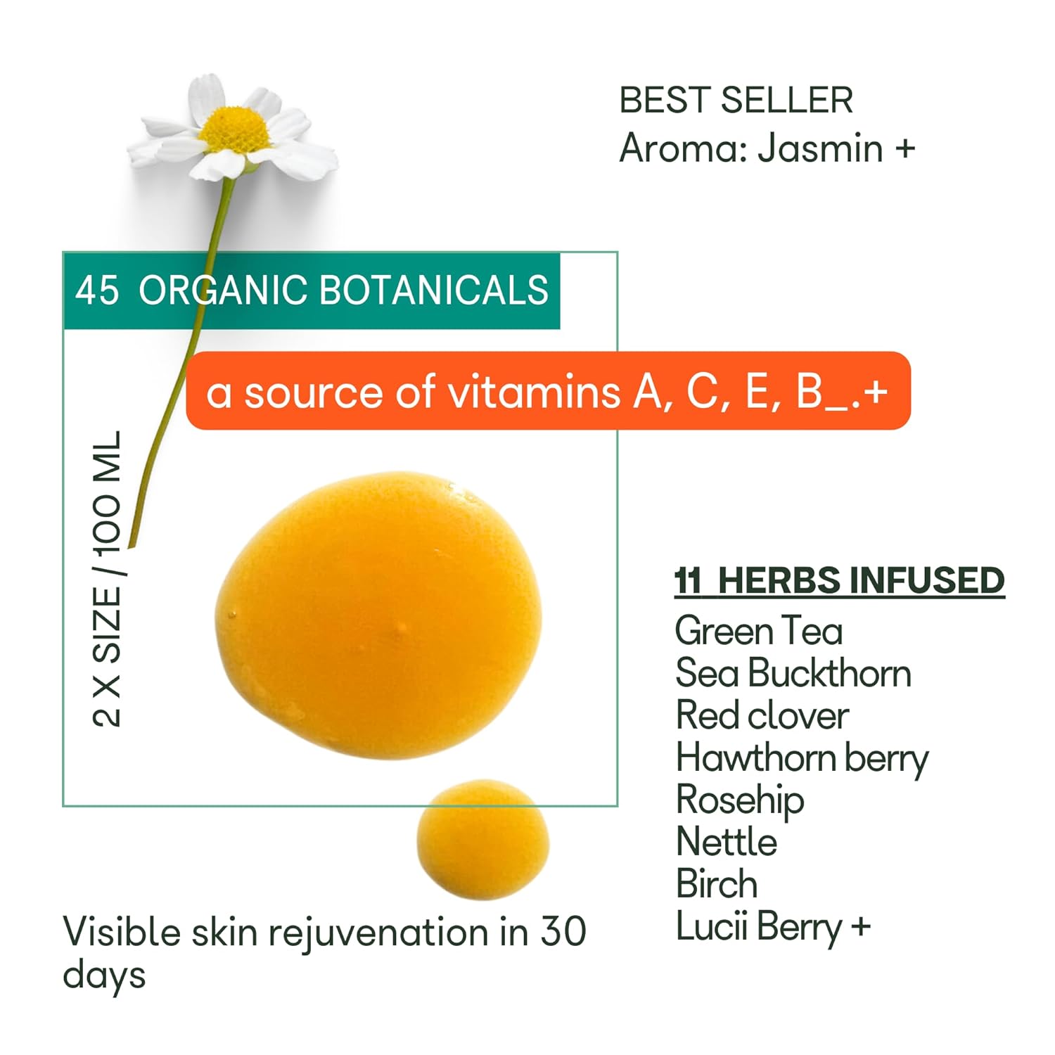 AROMATHERAPY: This organic face moisturizer features a dreamy aroma you’ve never experienced before, ensuring you fall in love with the first scent. Enjoy a calming journey with the exquisite fragrances of jasmine, helichrysum, plum oil, linden blossom, and herbal extracts. This harmonious blend uplifts your spirit relaxes your mind and enhances your skin’s rejuvenation.