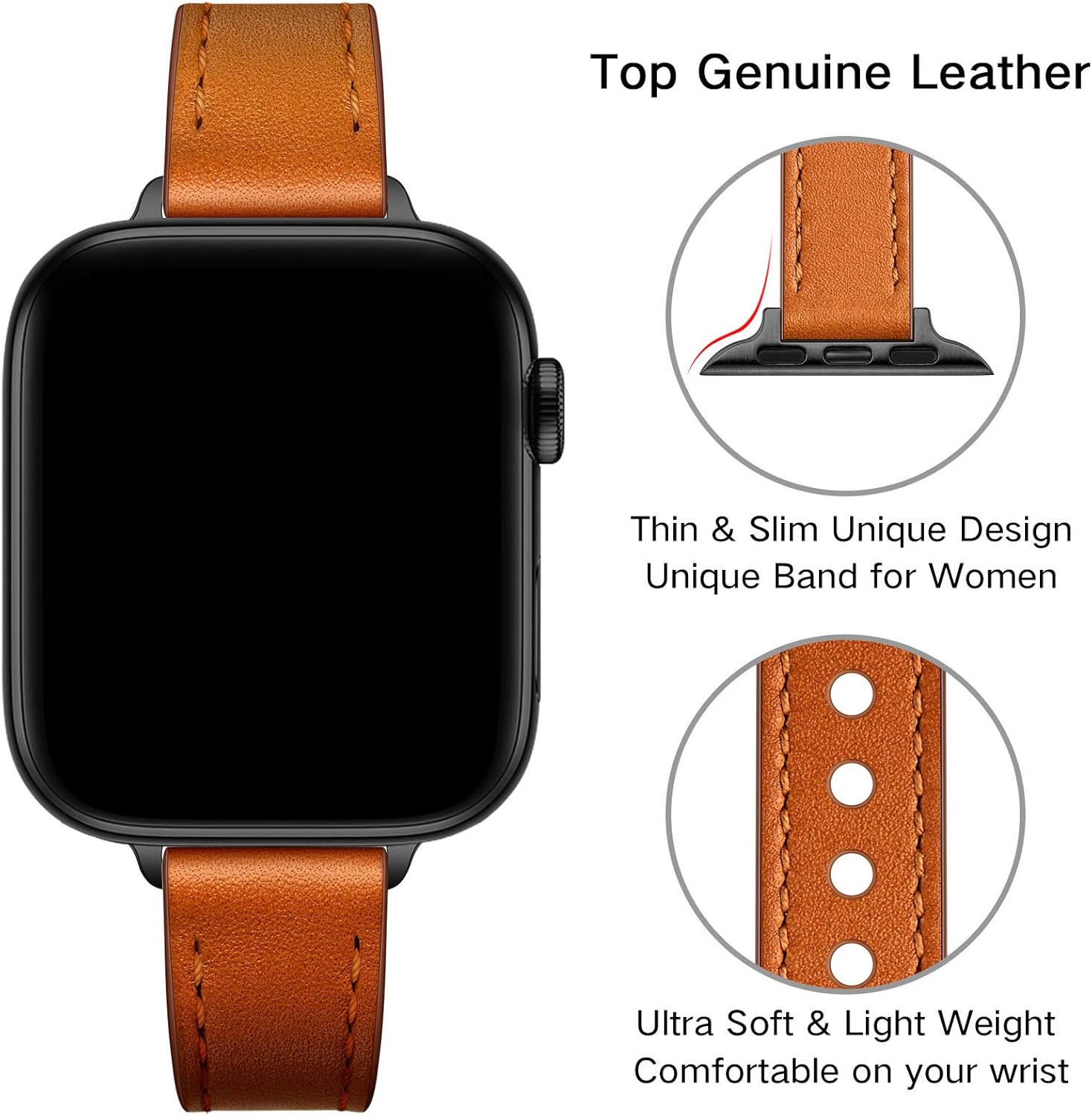 Slim Leather band Compatible with Apple Watch Series 10 (42mm), Series 9/8/7 (41mm), Series SE2/6/SE/5/4 (40mm) and Series 3/2/1 (38mm).