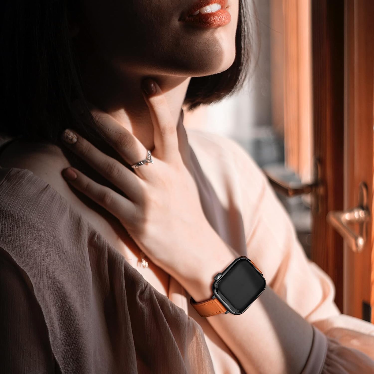 OUHENG Genuine Leather Smart Watch Band