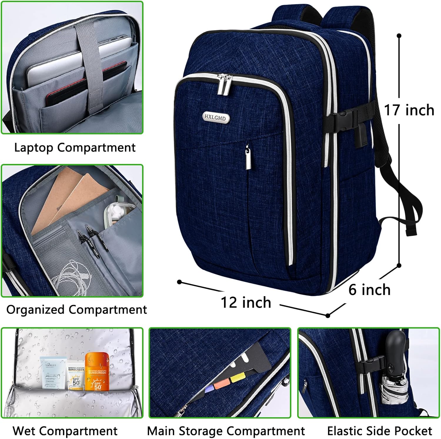 Personal Item Travel Carry On Luggage Backpack for Women Men Flight Approved Casual Weekender Laptop Bag for College Business Outdoors Hiking Water Resistant Lightweight Daypack with USB Charging Port