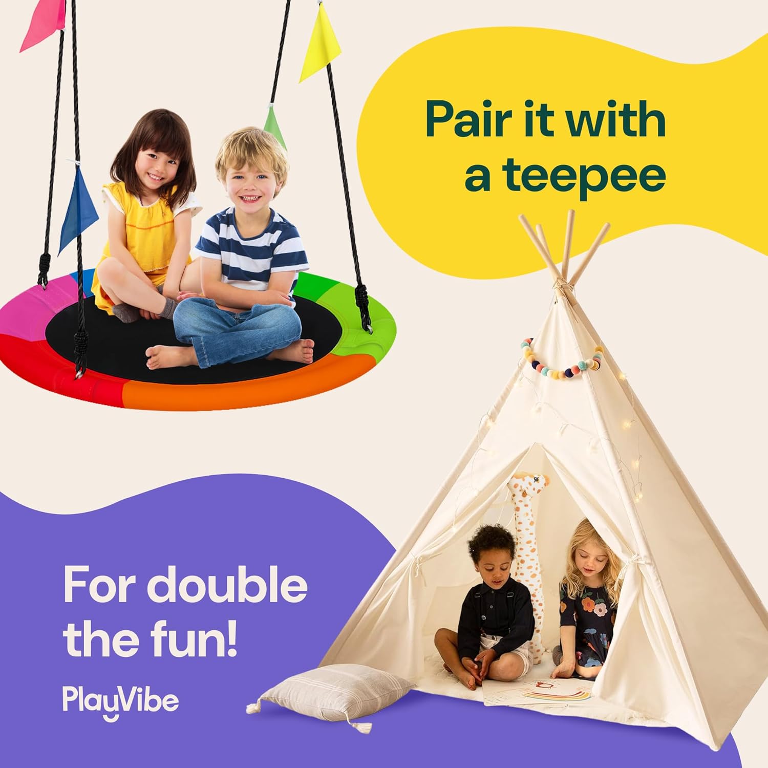 Spacious Round Swing Design: The 40-inch diameter of the Playvibe Saucer Tree Swings offers ample space for kids and their friends. Ideal as a swing for tree installations, it promotes social play and cognitive development through group interaction