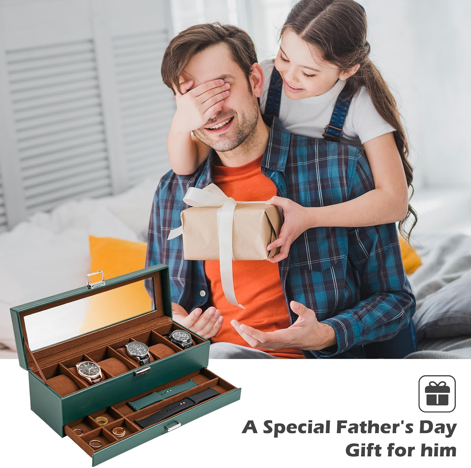 2-Layer: The upper layer can hold 6 watches, and the bottom drawer offers additional storage for watchbands, cufflinks, bracelets, rings, pens, necklaces, and other jewelry, keep them in one place and protect them against dampness, shaking and friction, or missing