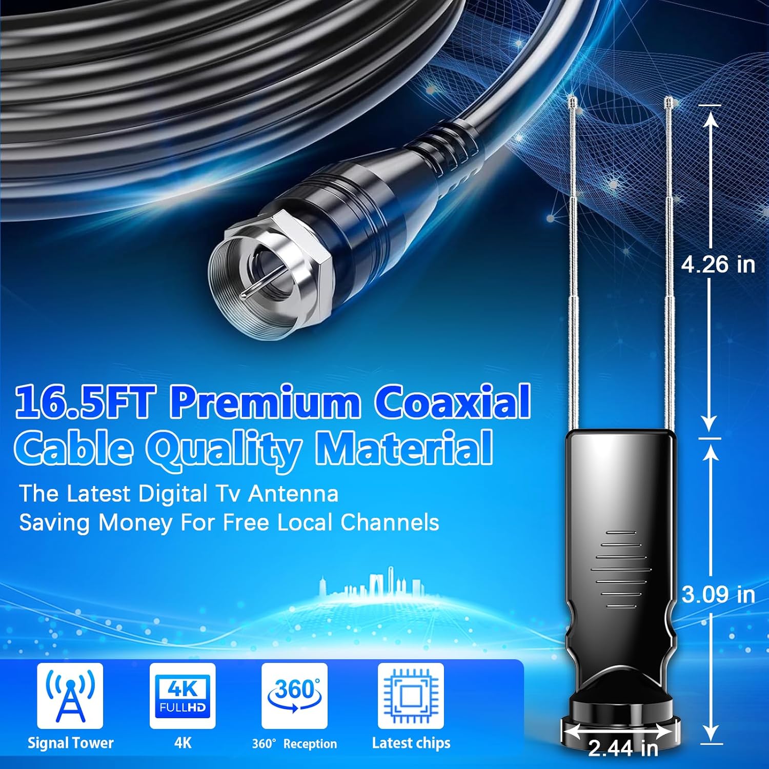 Compact but Powerful: Don’t let the small size fool you—this 4K-ready bunny ears antenna (1.25″L x 4.75″H) captures signals up to 200+ miles. Hide it behind your TV or stick it discreetly on a window for a clean, cable-free look.