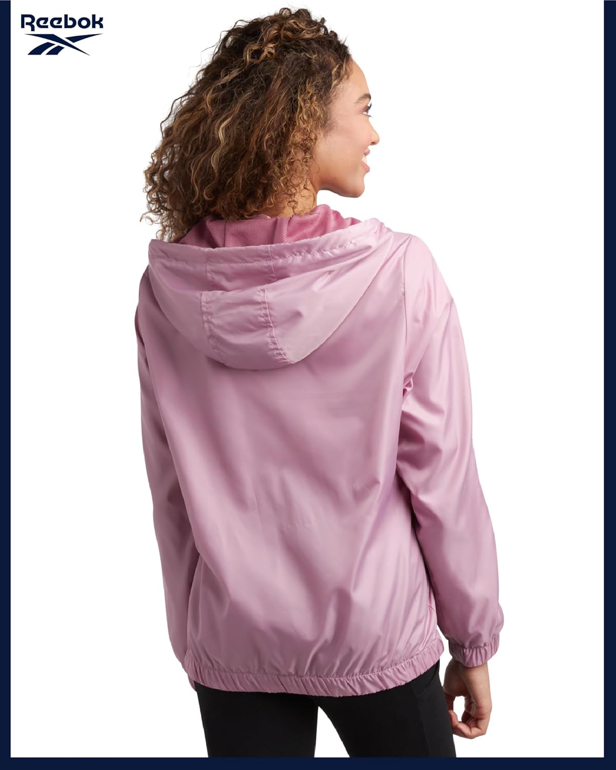 Reebok Womens Windbreaker Jacket – Lightweight Water and Wind Resistant Outdoor Hooded Rain Coat for Running (Sizes: S-XL)