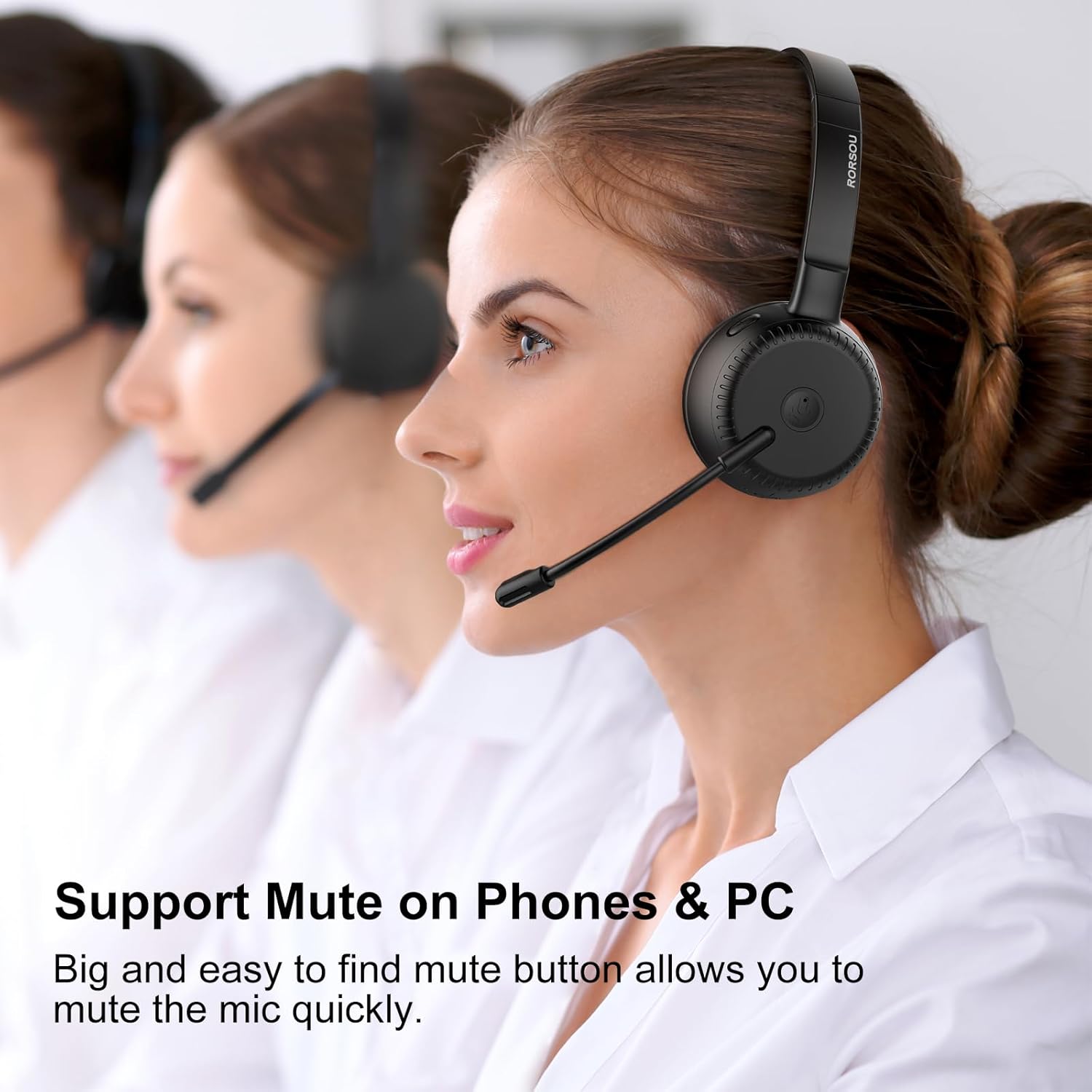 Easily Mute & Support Mute on PC: The work headset is designed with a mute button that allows you to mute your voice freely during a call. It is right located on the side of the headset, so there’s no searching to try and find it and you can mute quickly. The mute function of the Bluetooth headset for work works both on mobile phone calls, gaming and Zoom, Skype or Teams, or other leading platforms.