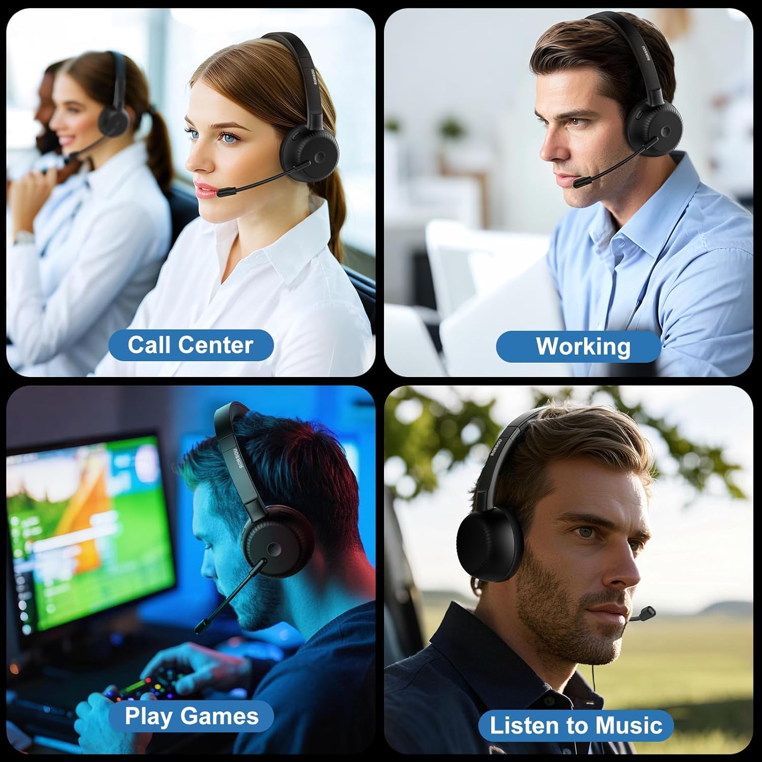 Professional Audio Anywhere. Better productivity: Whether you work at home or in the office or work from anywhere, wireless PC headset with microphone makes every call count. The 270°rotatable microphone process voice and environmental sounds separately, reducing unwanted distractions and accurately capture human voices so that each word during a phone call is crisp and clear. Perfect for hybrid workers to get instant concentration, seamless collaboration and get the most out of the workday.
