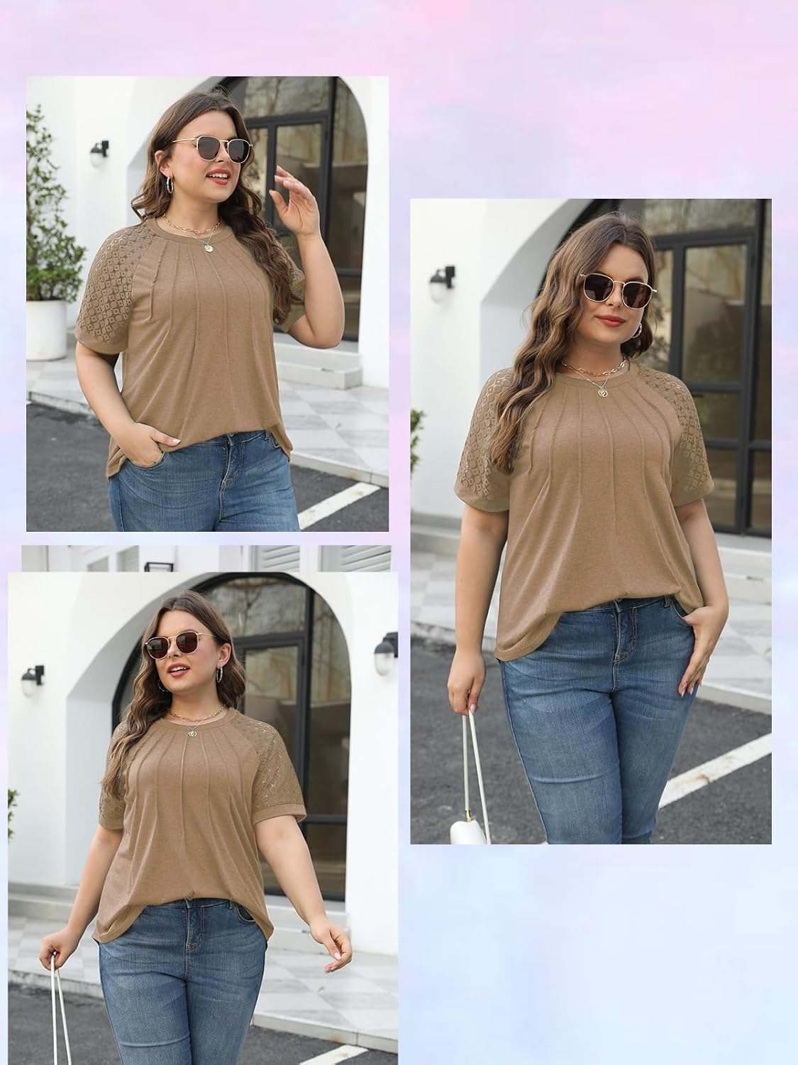 ROSRISS Plus-Size Tops for Women Summer Reglan Shirts Lace Short Sleeve Tunics XL-5XLAbout ROSRISS: ROSRISS is a brand specializes in Women’s Plus Size Clothing, which committed to provide soft and comfortable clothes, including tees, tunics, blouses, dresses, etc. We are professional in making clothing with standard US plus size, just choose your size from the size dropdown list without worry. We always believe that Plus Size Women Has Plus Size Beauty. So now, let ROSROSS achieve the most confident of you. Brand: ROSRISS Fabric Type: 95% Rayon, 5% Spandex Neck Style: Crewneck Sleeve Length: Short Sleeve Feature: crew neck, short sleeve