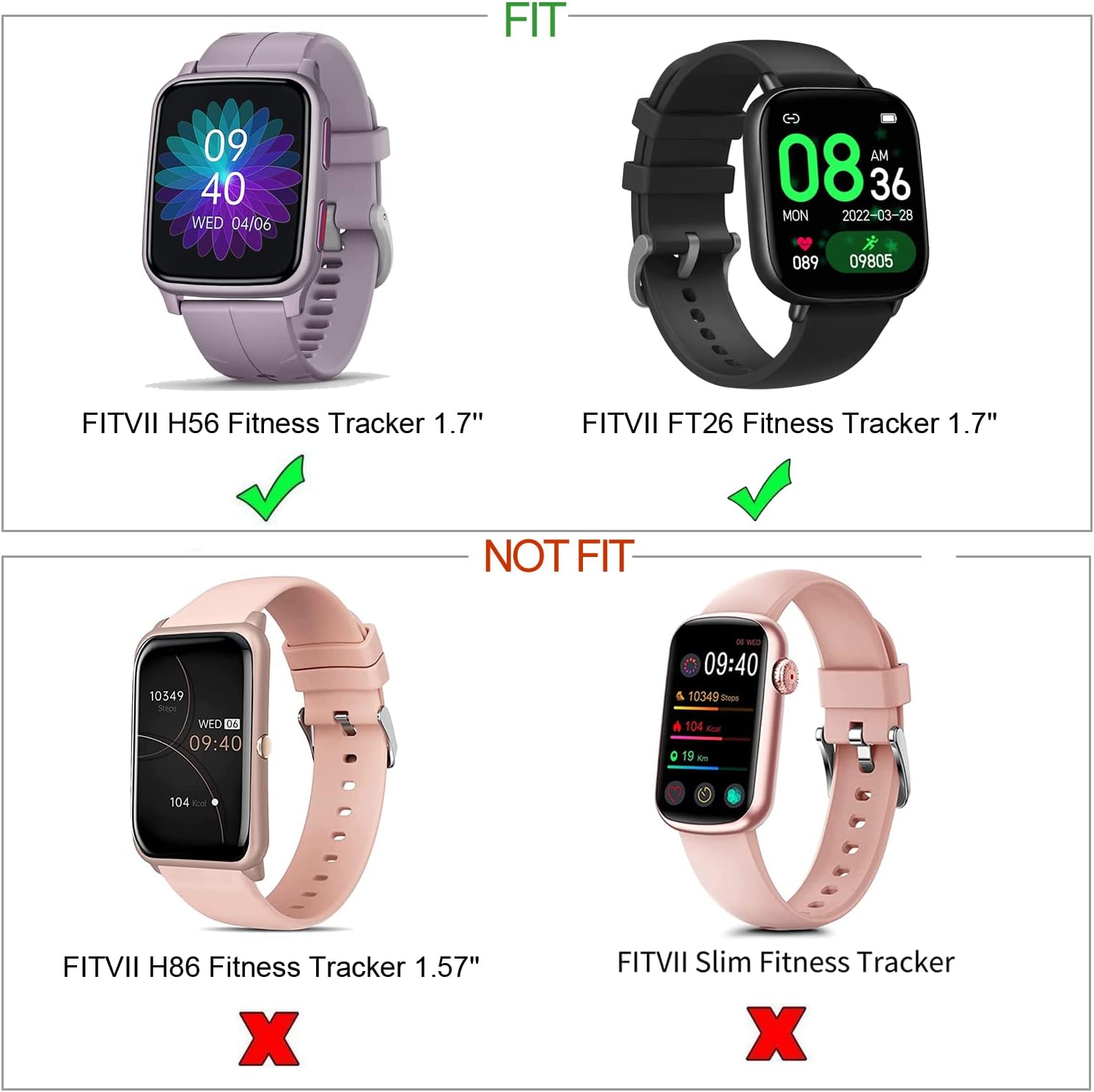 RuenTech 6-Pack Bands Compatible with FITVII H56 Smart Watch Bands, Soft Silicone Quick Release Replacement Bands for FITVII H56 Smatwatch (not for H86)