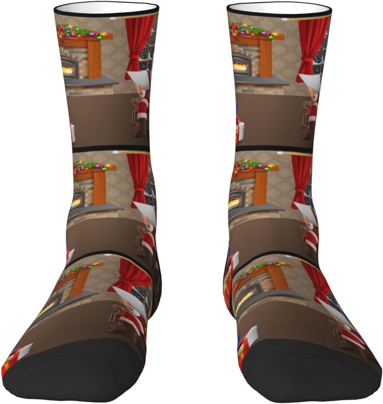 This Santa Claus Is Reading the List of Gifts Socks Made Of High Quality Polyester Fiber, Skin-Friendly And Comfortable, Moisture Wicking And Breathable, Not Easy To Pill. Good Elasticity, Complements Your Shoes And Clothes, Brings You An Overall Sense Of Fashion, And Can Be Reused For A Long Time.