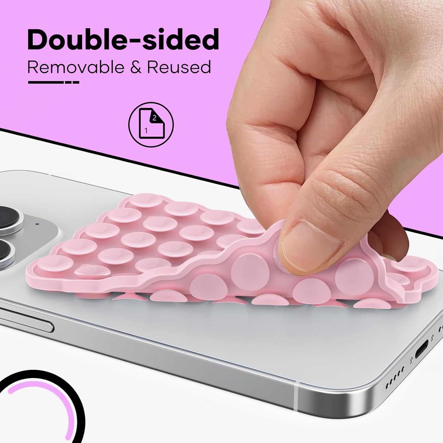 Silicone Suction Cup Phone Mount Double-Sided, Sticky Grip Suction Phone Case Mount for iPhone & Android, Hands-Free Phone Accessories for Tiktok Videos & Selfies (Light Pink)
