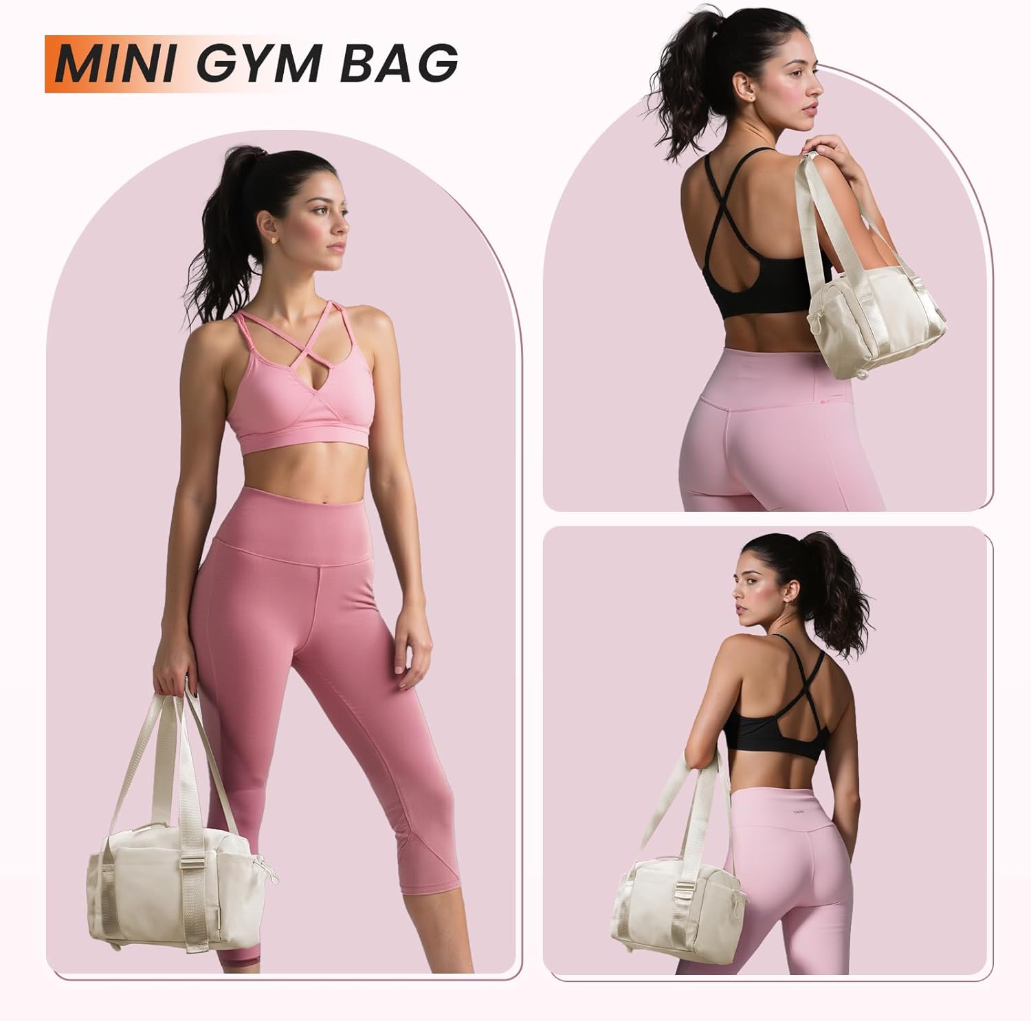 Adjustable Strap + Versatile Carrying:Customize the strap for shoulder/crossbody wear – ergonomic for all heights and compatible as a workout bags for gym women, dance bag, or mini travel companion.