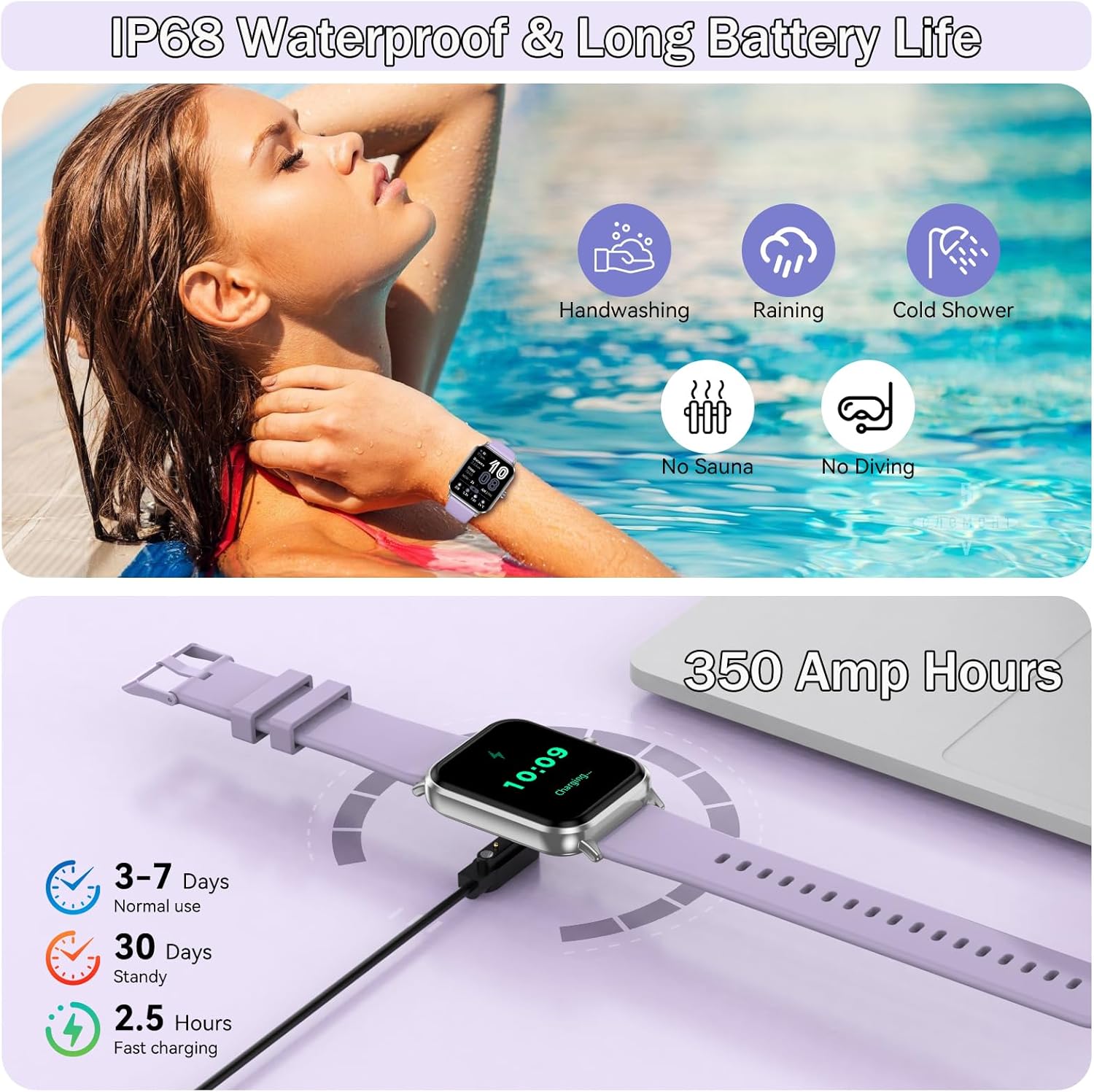 Smart Watch, 1.83″ HD Smartwatch for Men Women with 120 Sports Modes, Bluetooth Call & Make Call, Health, Fitness & Sleep Tracker, Timer, 5 ATM Water-Resistance, Fitness Watch for Android/iOS, Purple