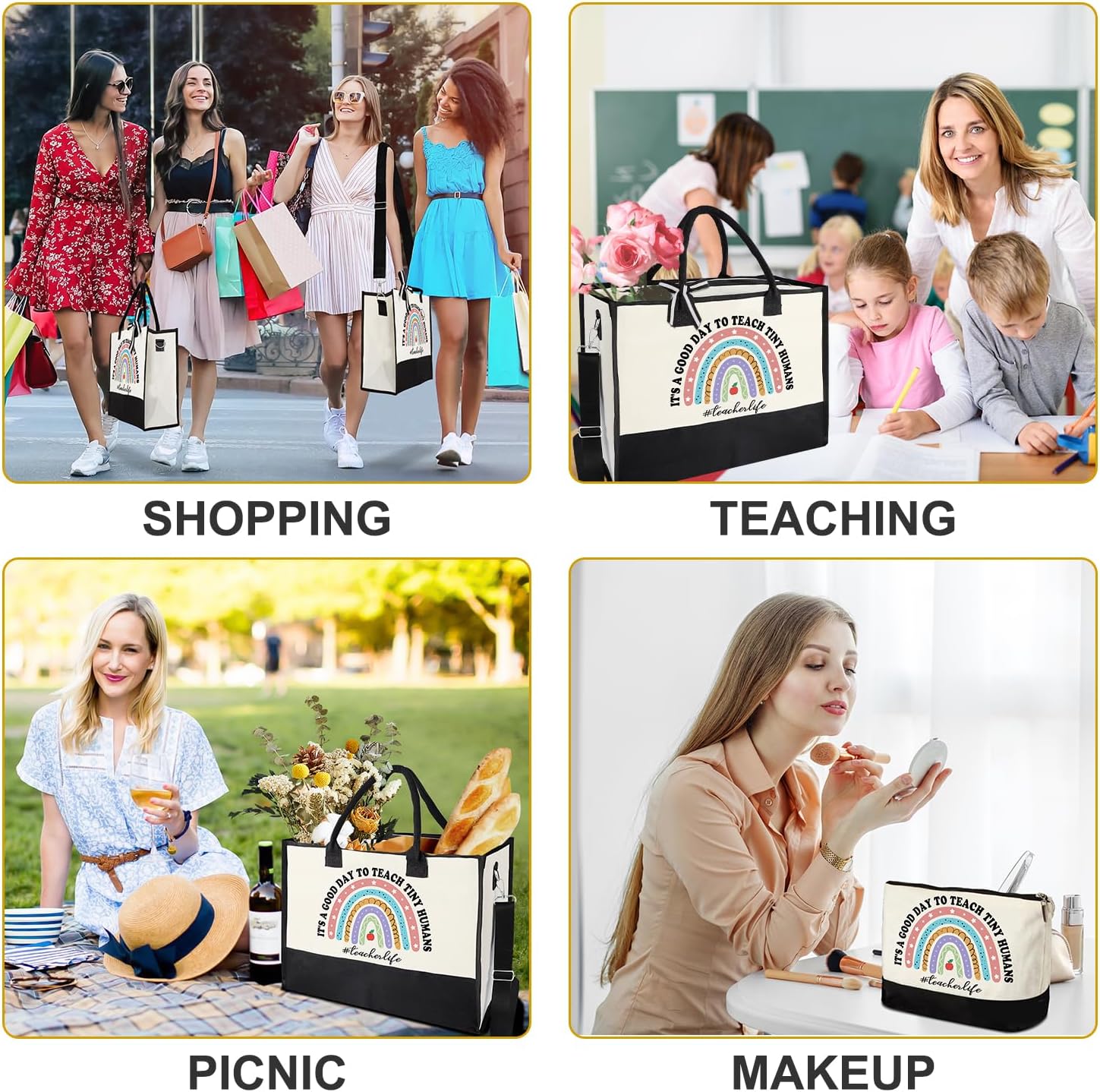 Teacher Appreciation Bags – Large Canvas Tote with Makeup Bag for Women, Perfect for Teacher’s Day & Graduation Gifts