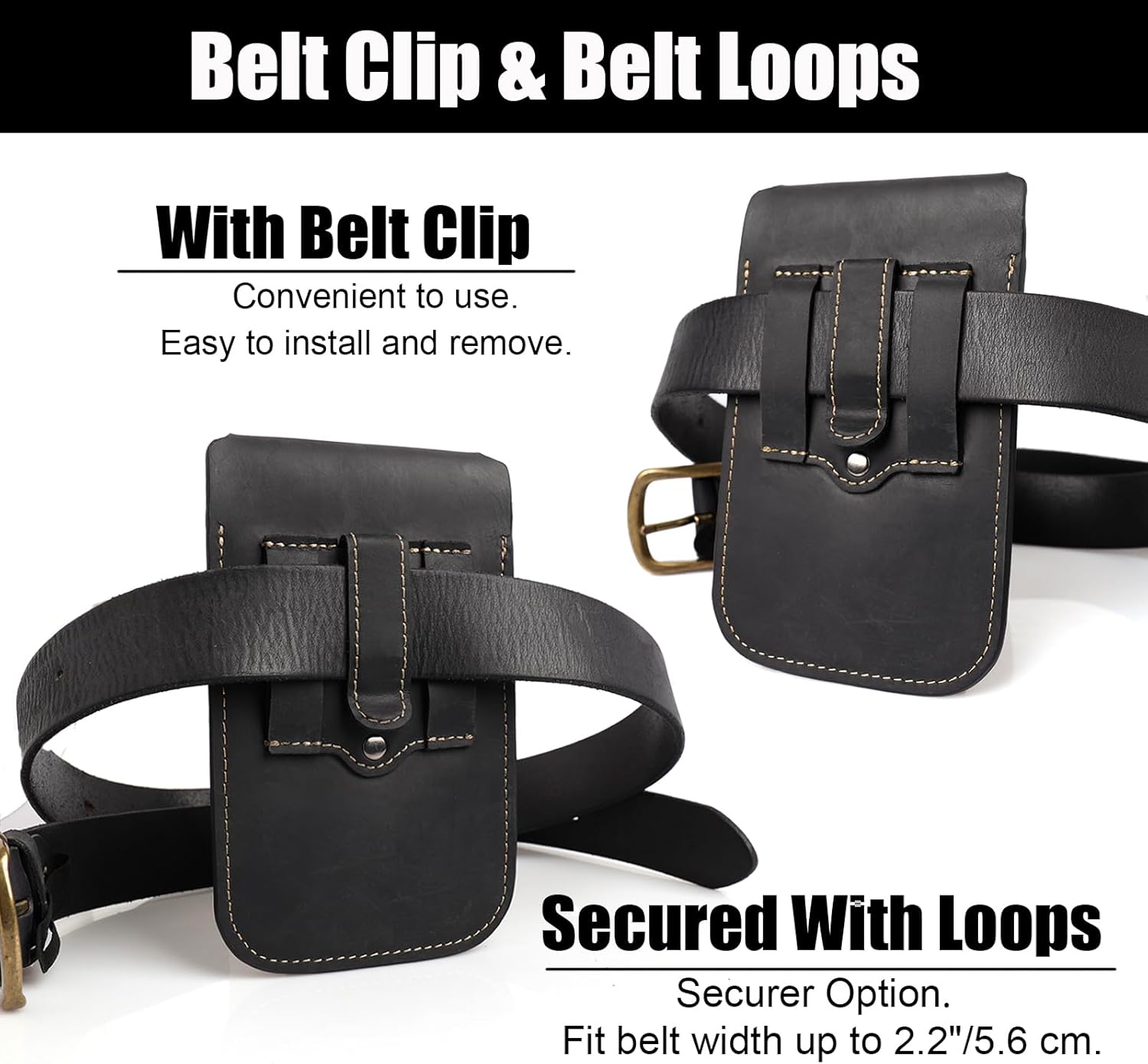 Good quality leather material plus fine and tight stitching, makes the leather phone holster easy to clean, scratch resistant, thick and long-lasting.