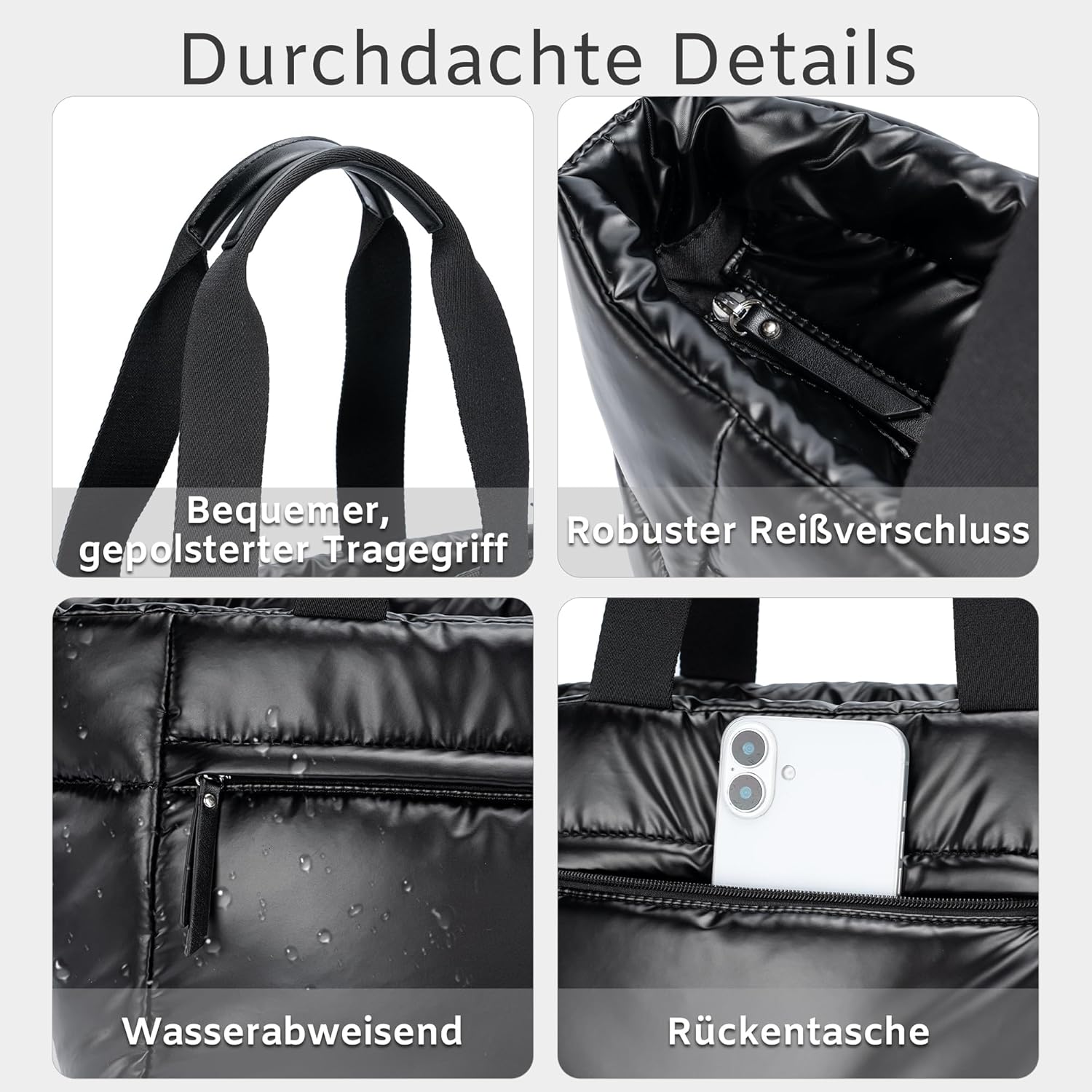 Tote Bag for Women,Lightweight Puffer Work Tote with Zipper,Quilted Shoulder Handbag for Travel Work Gym