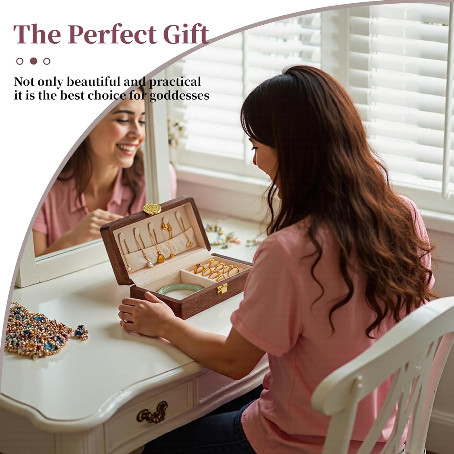 Small Solid Wood Jewelry Box: Lightweight and compact. Size:7*3.9*2.7inch, it can easily fit into your suitcase or handbag. It is more convenient to have a small jewelry box to use or store your jewelry while traveling.