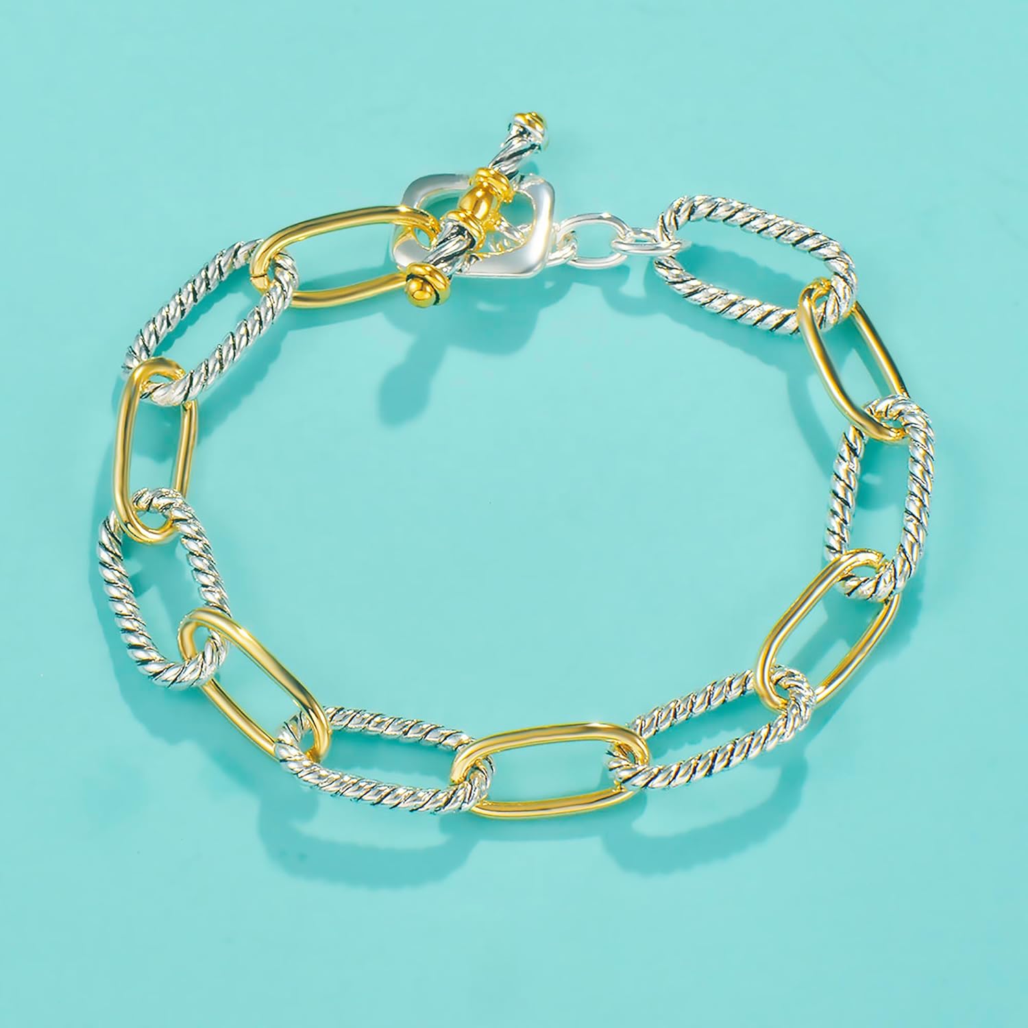 Discover the elegance of twisted cable wire jewelry with UNY JEWEL’s two tone link bracelets. Each style blends silver and gold tones in a rope-style chain, inspired by luxury fashion. From slim, chunky to statement, every piece makes a timeless gift for women.