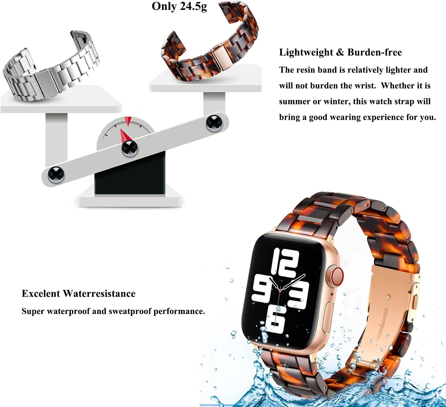 Our resin watch band is available in more than 10 colors, black, white, green, pink, pink folower, amber etc.. Different color combinations meet the need of different occasions. Very classic resin style, it matches well with clothes and is suitable for all kinds of daily life. People of all styles can find a color that suits them. Wearing this stylish and elegant watch band will receive many compliments. Show yourself unique and beautiful.