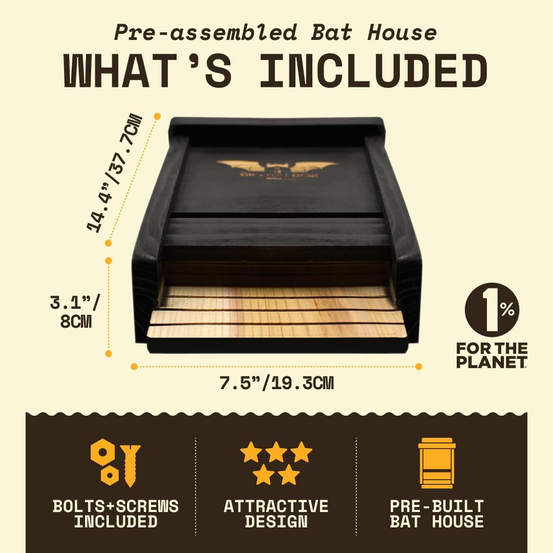 Easy Installation Bat House Kit: This preassembled bat house kit makes setting up a breeze. Secure it to your house, trees, or other outdoor locations to create an inviting space for bats with minimal effort