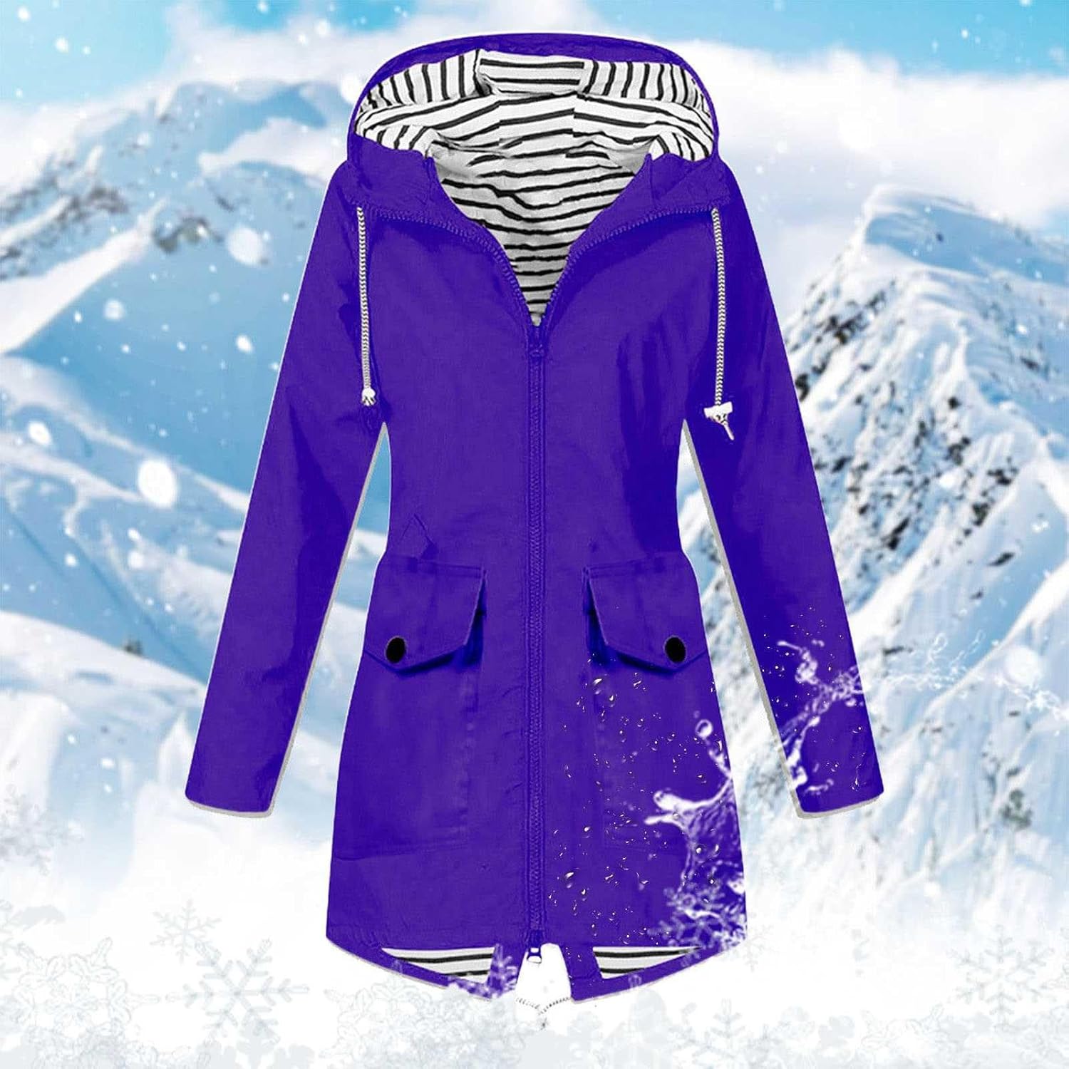 Winter Jackets for Women Outdoor Plus Size Hooded Windproof Loose Coat Long Sleeve Windbreaker Zip Up