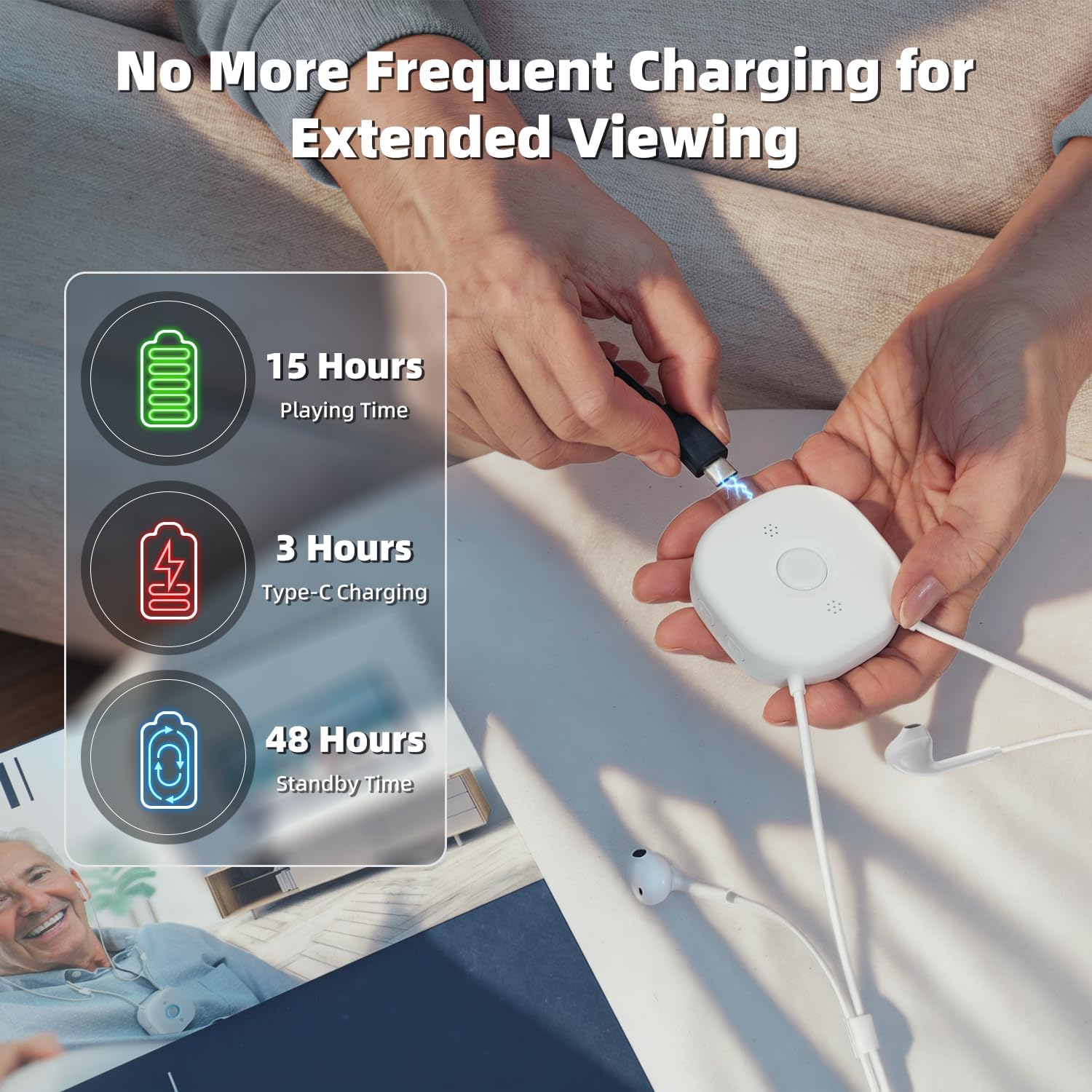 Immersive Audio for TV Watching: Enjoy high-quality sound with wireless headphones for TV. These TV headphones feature an ergonomic, adjustable neckband for comfort and stability. With near-zero latency and enhanced volume technology, they deliver crystal-clear sound—perfect for seniors and users with hearing loss.