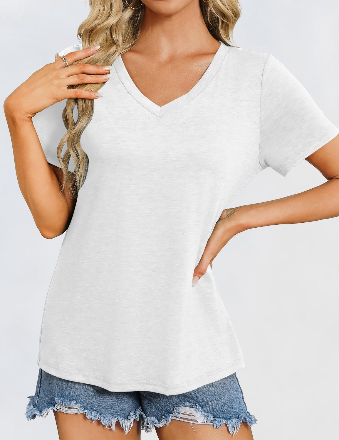 Womens Short Sleeve T Shirts V Neck Tops Summer Trendy Comfy Casual Basic Tee Shirt
