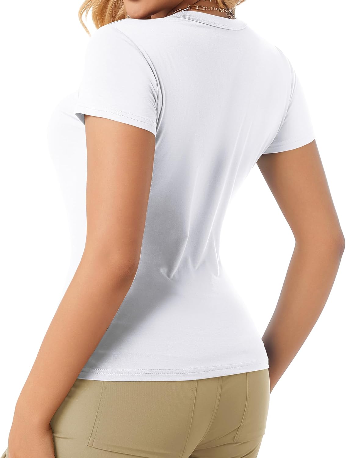 The tight short sleeved top is casual and comfortable, lightweight, soft, simple, suitable for a variety of matching.