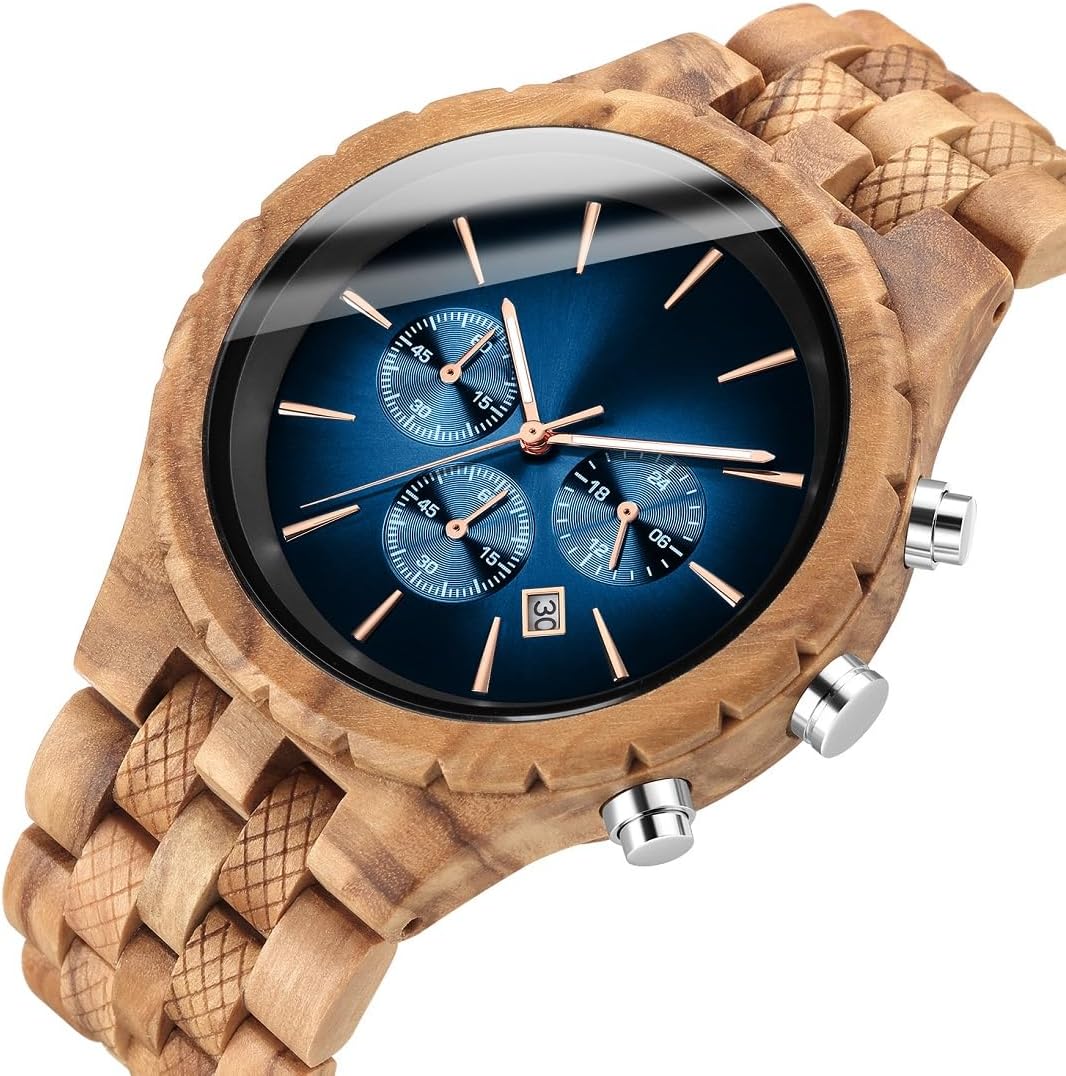 Wooden Watch for Men Women, Stylish Chronograph Military Casual Calendar Wood Watches