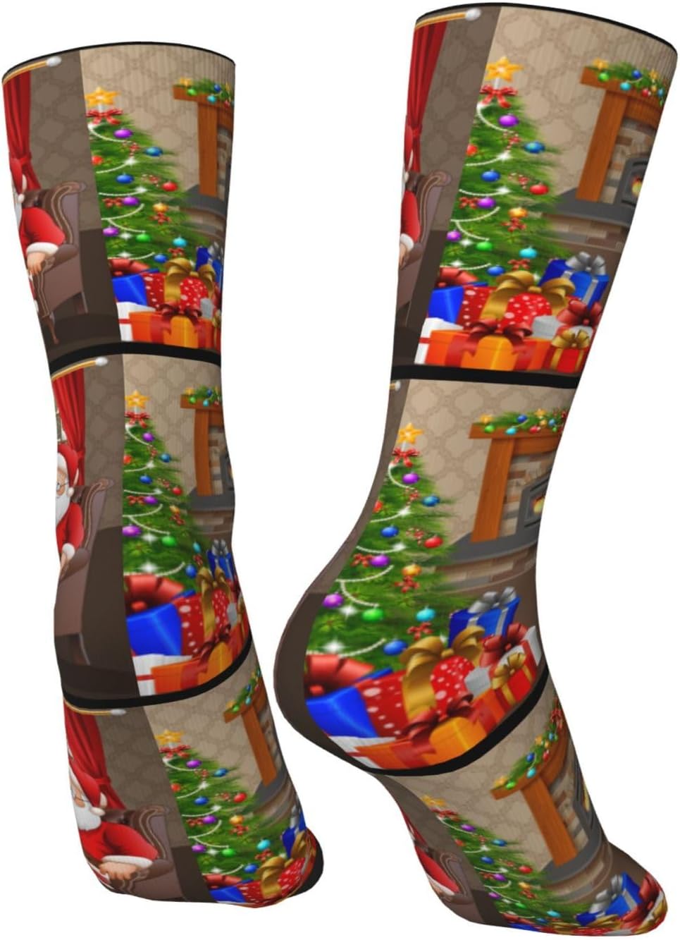 This Santa Claus Is Reading the List of Gifts Socks Made Of High Quality Polyester Fiber, Skin-Friendly And Comfortable, Moisture Wicking And Breathable, Not Easy To Pill. Good Elasticity, Complements Your Shoes And Clothes, Brings You An Overall Sense Of Fashion, And Can Be Reused For A Long Time.