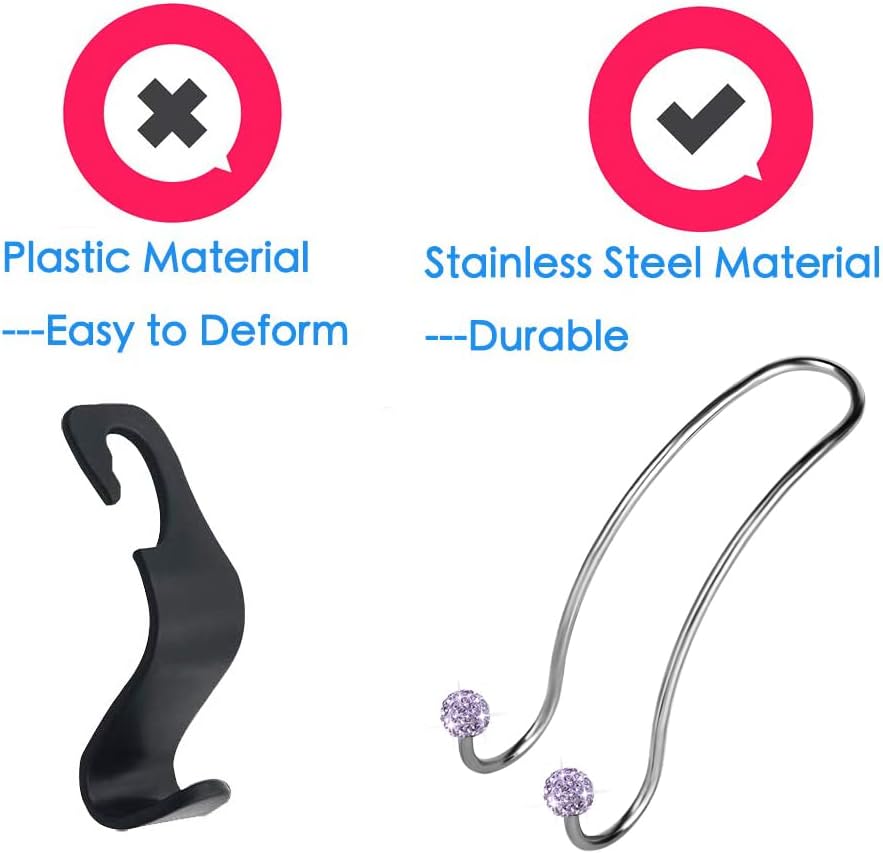 Customers find these car hooks beautiful with a little sparkle detail and appreciate their sturdy construction, noting they hold purses and groceries well. The hooks are handy for various items and easy to put on, working effectively behind car seats. While some customers report their bags stay securely in place, others mention they can fall off easily.