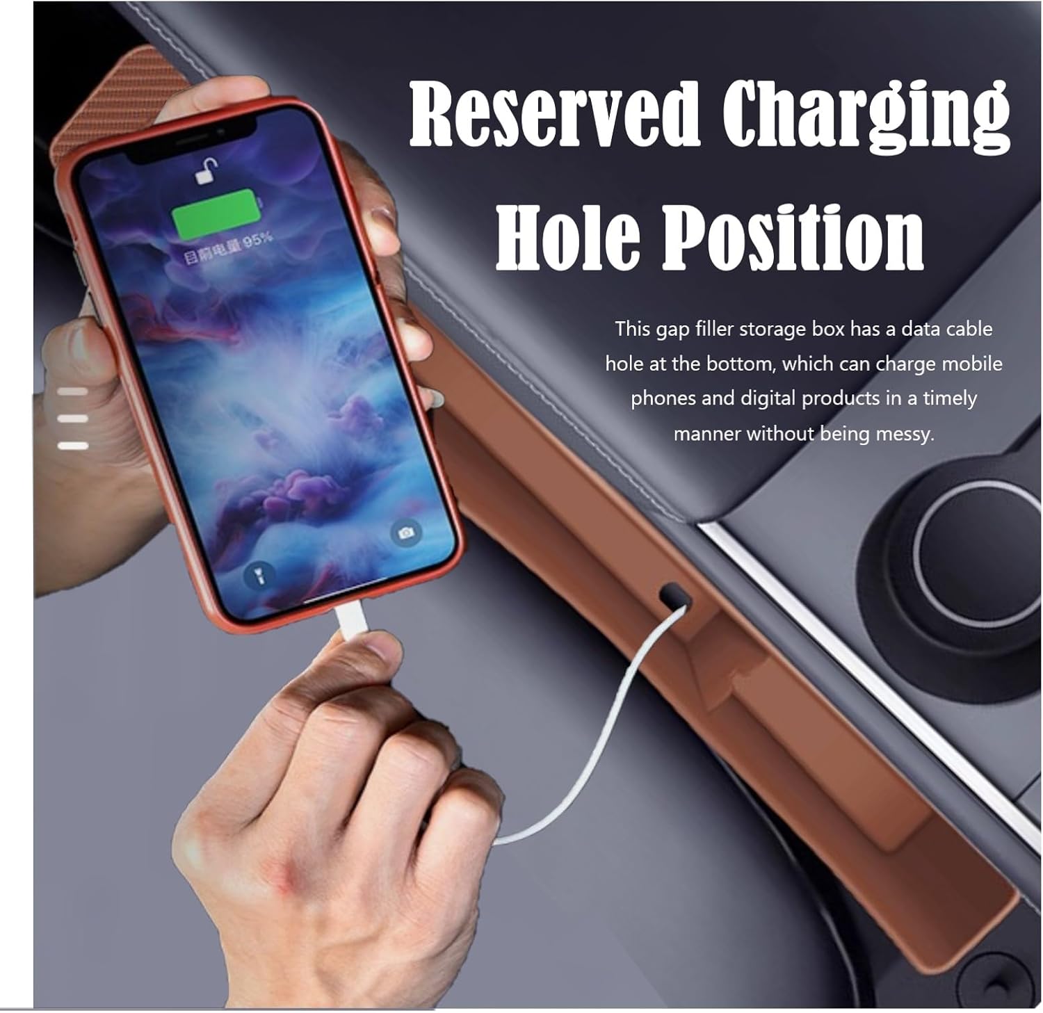 【Reserved Charging Hole Position】This gap filler storage box has a data cable hole at the bottom, which can charge mobile phones and digital products in a timely manner without being messy.
