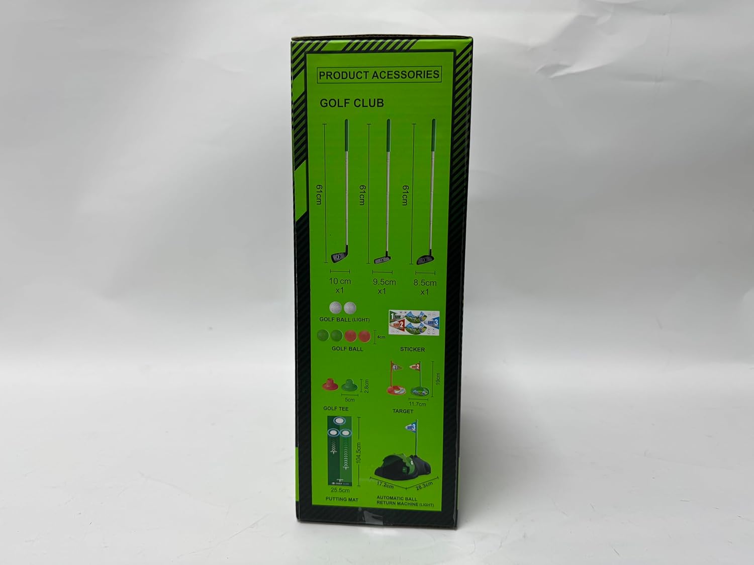 【16PCS Rich Accessories】This Toy golf ball sets for kids includes everything kids need to start learning the game, including Auto golf ball returner*1, Golf Putting Mat*1, Length Adjustable Golf Clubs*3, Lighting Golf Balls*2, Green Golf Balls*2, Red Golf Balls*2, Golf Tees*2, Golf Targets*2, Sticker*1. With kids golf toy sets’ easy set-up, kids will be playing within minutes.